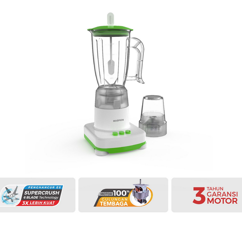 Maspion Blender MT-1207 With Dry Miller The mandatory weapon must be in the kitchen, to facilitate you in smoothing foodstuffs and beverages. The variety of models and functions are tailored to your needs. Make the dish for your beloved family more special.Design Elegant, Blender MT-1206 looks beautiful with design and red, making your cooking activities more fun.