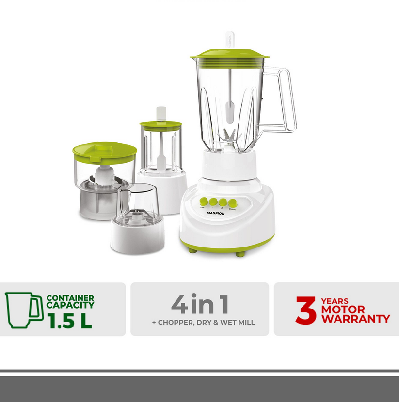 Maspion Pelumat Blender with Wet + Dry Miller & Chopper 1.5 Liter MT-1524 PL