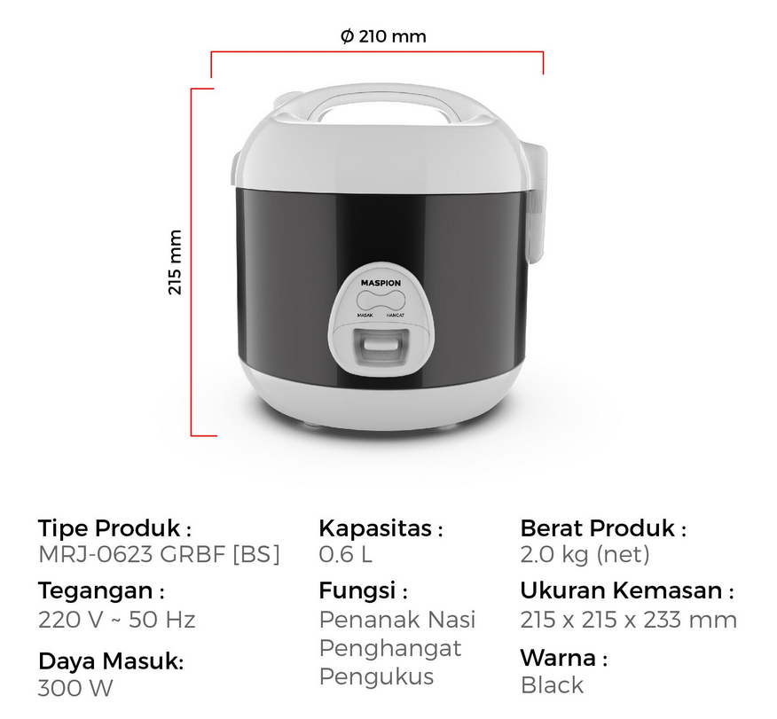 Description of Maspion Rice Com MRJ-0623 GRBF: