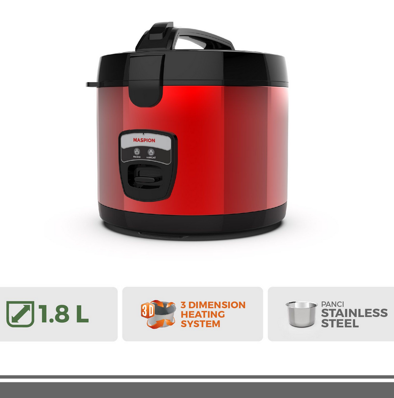 Magic Cooker MRJ-1856BRS The pan is made of stainless steel so that the heat is evenly distributed throughout the pan and makes the rice cooked perfectly, and is more hygienic and rust-free. The body uses a stainless steel plate making the magic cooker more luxurious and easy to clean.