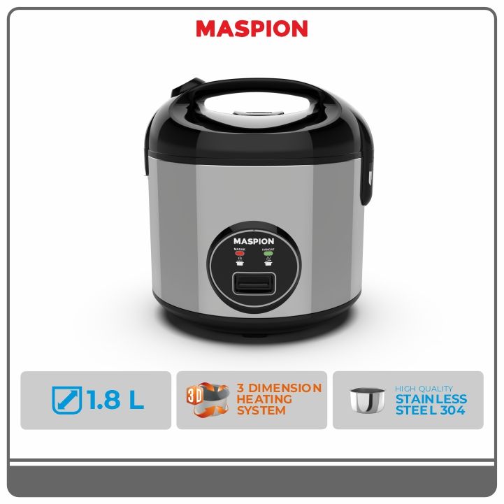 magic cooker rice cooker capacity 1.8 liters 3 in 1 rice cooker, steamer, warmer 395 watt stainless body product advantages 3-dimensional heating system, produces even heating, so that the rice is cooked perfectly stainless steel pan, pan with a capacity of 1.8 liters made of stainless, anti-rust steel, anti-scratch, chemical-free, so it is safe for food, and still maintains the nutritional content in rice stainless steel body, using anti-fingerprint stainless plate makes the magic cooker more luxurious and easy to clean steam cap functions to regulate steam circulation well so that it produces delicious and fragrant rice voltage 220 v – 50 hz cooking power 395 w capacity 1.8 liters