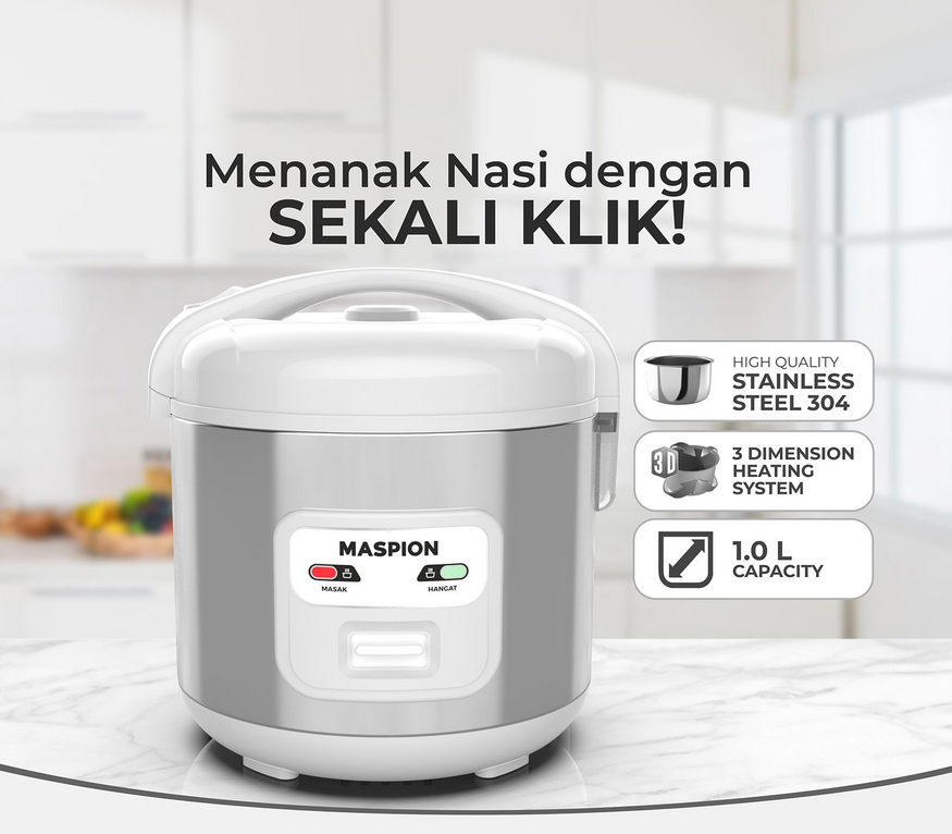 Maspion Rice Cooker Magic Com 1 Liter MRJ-1003 TSS SS 304