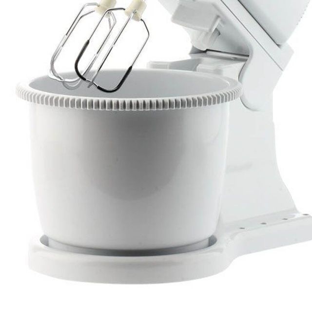It comes with a mixing bowl that’s integrated with the beater, making it easier to mix without having to manually rotate the mixer and worry about spills. The bowl is easily attached and removed for easy cleaning.