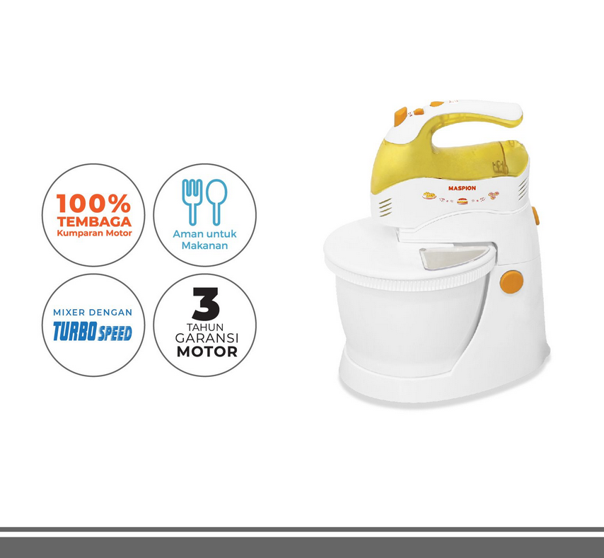 Maspion Stand Mixer MT-1191 uses a powerful motor, as well as an innovative beater and kneader design to make the dough rise perfectly.