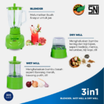 The Miyako BL-152 GF blender has a 3 in 1 function. Equipped with a large-capacity blender tube up to 2 liters of water that makes it easier for you to make a variety of juices up to 1.5 Liters, as well as an additional 1 dry mill tube and 1 wet mill tube. Dry mill tubes function to smooth seasonings – dry seasonings such as coriander, pepper and so on. Wet mill tubes function to smooth the seasoning – wet seasonings for sambal, curry, gulai and so on.