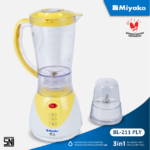 This blender Miyako BL-211 PLY with a combination of futuristic white and yellow has ICE CRUSHER features that can destroy ice cubes without using water though. The blade is made of 304 stainless steel material that is anti-rust, durable and more hygienic. The Miyako BL-211 PLY Blender tube material is made of Acrylonitrile Styrene which is a plastic material that has been Food Grade so it is not harmful if it comes into contact with human consumption materials.