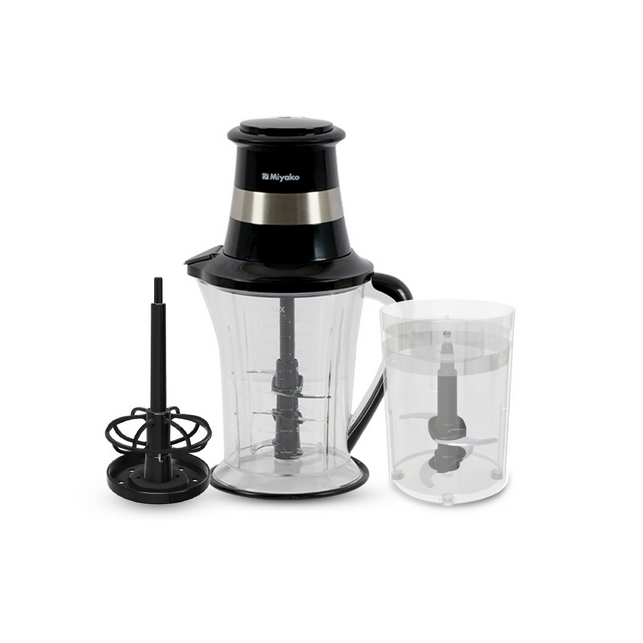 Chopper Miyako with a minimalist black look is a 8 in 1 multifunctional chopper that can grind a variety of foodstuffs such as meat, fish, wet seasonings, dry seasonings, juice, ice cubes, nuts, to cake dough. There is an additional double beater or egg shaker so that the dough is more maximal.