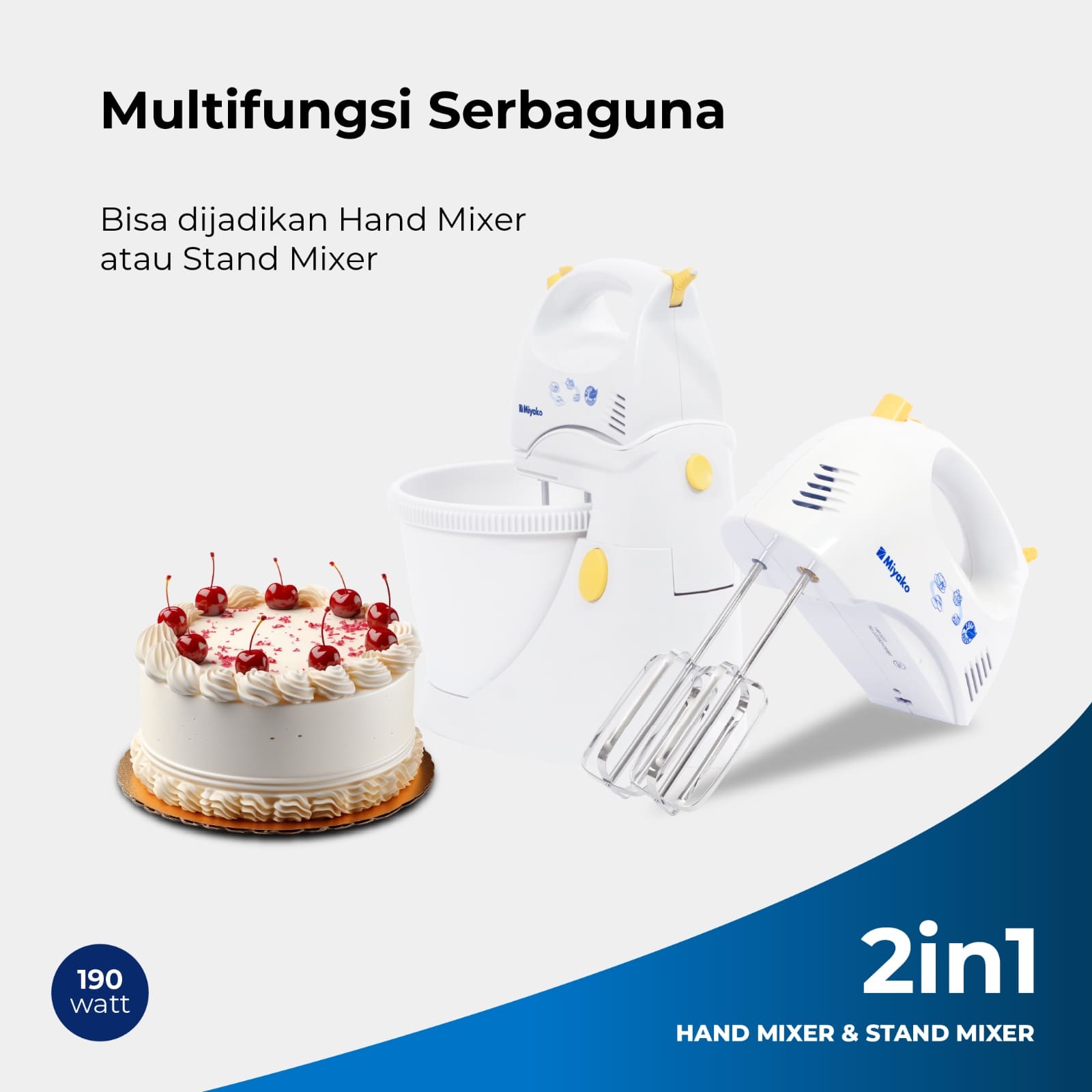 Is a stirring device that you can use to facilitate the process of mixing semi-solid or semi-liquid food, equipped with a stand mixer and bowl (bran stirring container) so as to make the cooking process or make the cake easier and more fun. This stand mixer has a power of 190 watts of power and power saving.