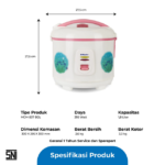 Is a rice cooker with a flower motif clover mode will change color when before cooking and cooking. It has a function of 3 in 1 that is as a rice cooker, steaming, and warm food. The inner pot made of high quality material makes it anti-stick, not easily scratched and very easy to clean. It has 3 heating elements at the top, middle and bottom that make the rice ripen more perfectly and hold warmer for longer.
