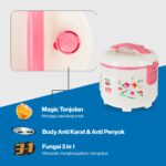 Rice Cooker Miyako MCM-507 wrapped in a body anti-rust and anti-slump White with a beautiful floral motif. In addition, MCM-507 has a 3 in 1 Functionthat is very practical to use for cooking and warming as well as steaming.