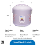 Rice Cooker Miyako MCM-509 wrapped in anti-rust body and Anti-Snallage Light Purple with graceful cherry blossom motifs. In addition, MCM-509 has a 3 in 1 Functionthat is very practical to use for cooking and warming as well as steaming.