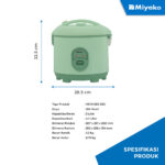 Rice Cooker Miyako MCM-559 SBC is wrapped in bodyan anti-rust body and anti-smooth colored special “Minty Green” minimalist. In addition, MCM-559 SBC also has a large capacity (Big Capacity) to 2 liters of rice and warms 5.7 liters of rice. So it can serve up to 17 servings of rice (with a dose of 200 grams per serving).