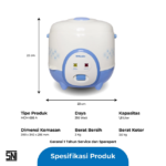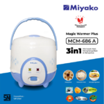 Is a rice cooker with a minimalist design that is suitable for your kitchen. It has a function of 3 in 1 that is as a rice cooker, steaming, and warm food. The inner pot made of high quality material makes it anti-stick, not easily scratched and very easy to clean. It has 3 heating elements at the top, middle and bottom that make the rice ripen more perfectly and hold warmer for longer.