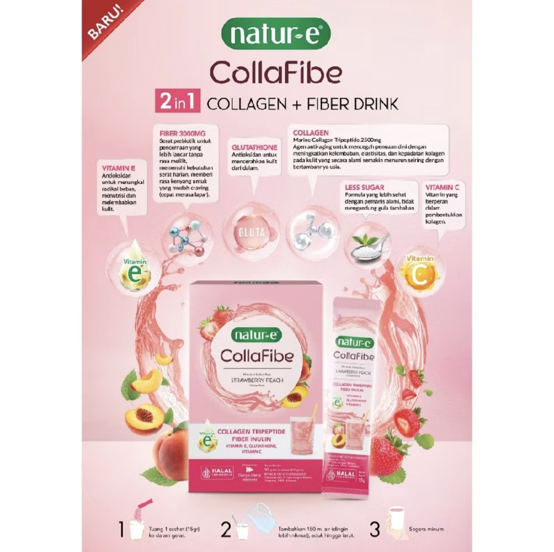 Natur-E CollaFibe is a delightful, fruit-flavored beauty supplement that helps maintain beauty and healthy skin, from head to toe. CollaFibe is made from natural ingredients, ensuring benefits without side effects.