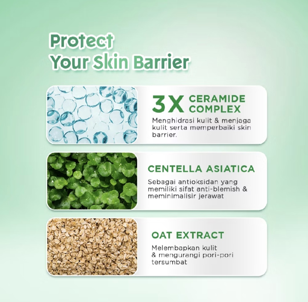 Maintain healthy skin with the Ceraglow Skin Barrier Calming Series, which helps protect the skin barrier from damage. Formulated with 3x Ceramide Complex, Vitamin E, Niacinamide, Sunflower Oil, Centella Asiatica, and Oat extract, NuGlow Complex protects the skin barrier, moisturizes, and maintains skin elasticity for a bright, glowing, and youthful complexion. Suitable for normal, sensitive, and oily skin.
