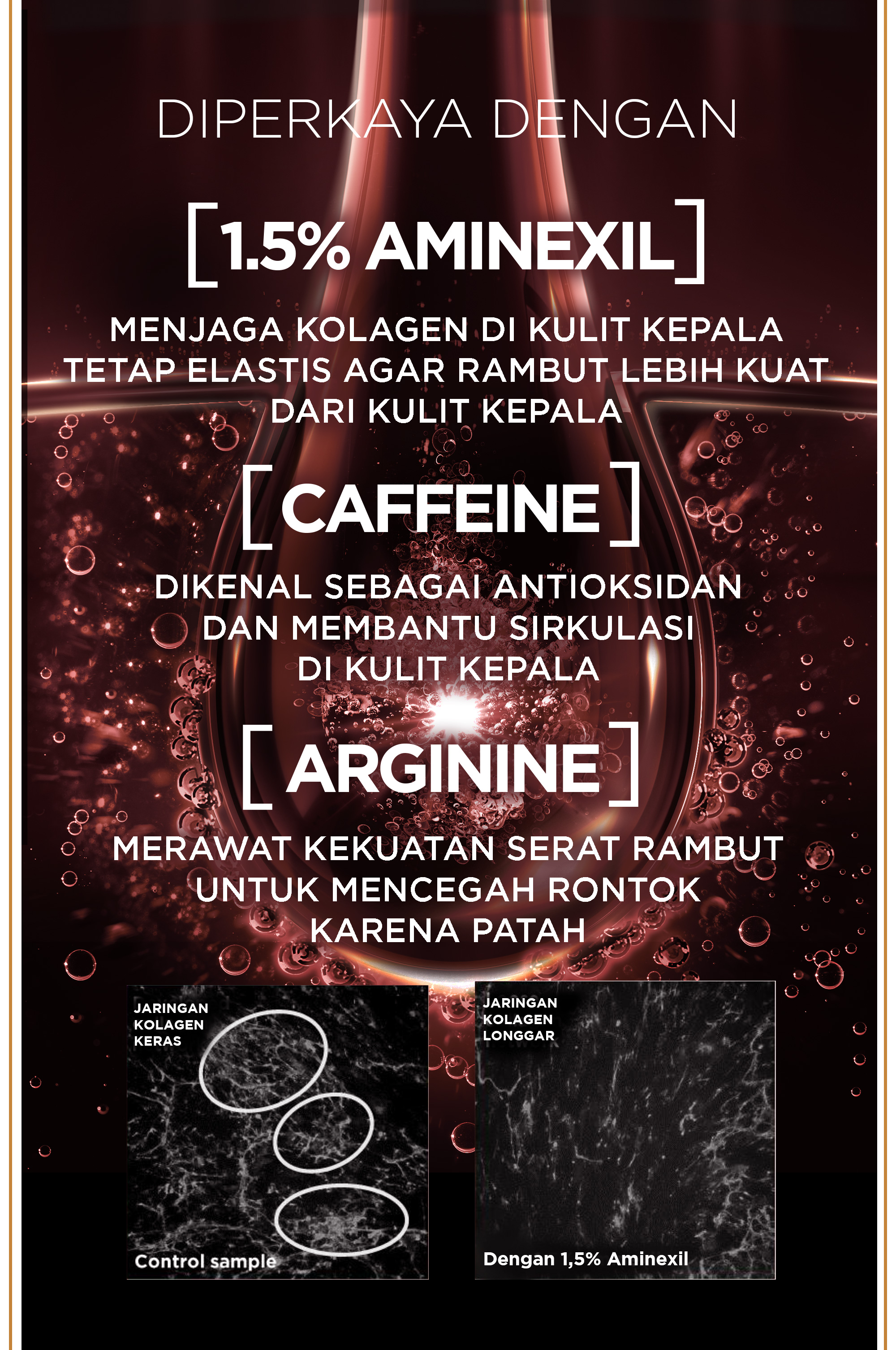 Rebuild your hair with Anti-Hair Loss Serum, a formula concentrated with 1.5% Aminexil and enriched with caffeine and arginine. Hair follicles are maintained on the scalp, hair is strengthened from the roots, and hair loss is reduced. Clinically proven, the scalp becomes less visible in just 6 weeks on all hair types*. 2X less hair loss at the comb** and up to 93% less breakage***. Made by L’Oréal Paris and dermatologist-validated.