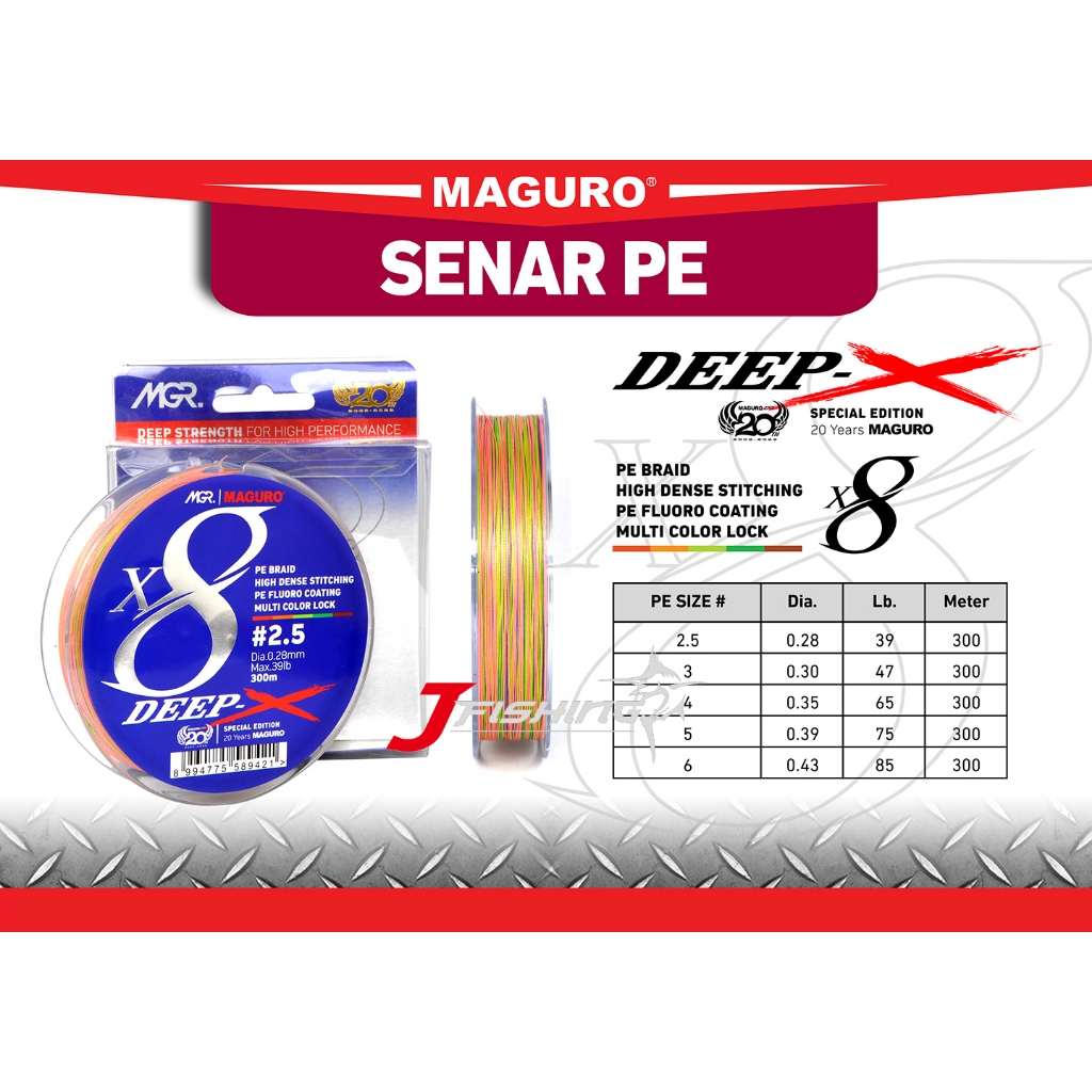 New PE Strings From Maguro Special 20th Maguro, PE Strings with a length of 100m, 150m, 300m, 500m, and have 8 twists or X8 with multicolor spoil the beauty of this string.