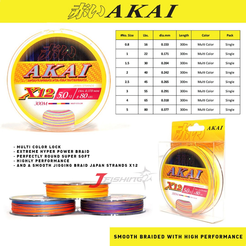 PE String AKAI X12 300M | PE 0.8 to PE 5 | Multi Color | PE String | Japan Strands