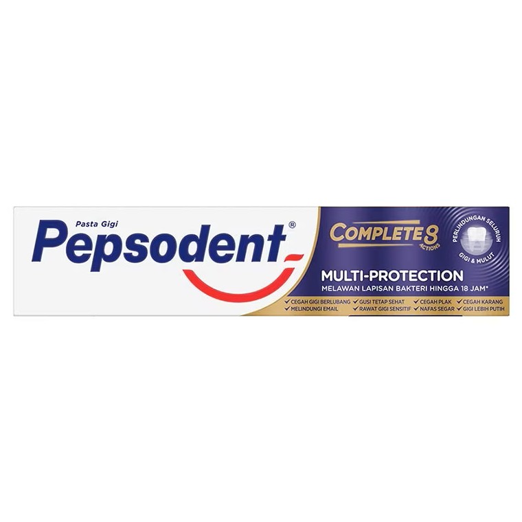 BRIEF PRODUCT DETAILS PEPSODENT COMPLETE 8 MULTI-PROTECTION TOOTHPASTE. Choose Pepsodent Complete 8 with 8 scientifically proven benefits & provides complete protection for your family’s teeth and mouth against bacteria. Contains Zinc mineral as a natural ingredient that is proven to work on all surfaces of the mouth to reduce 99% of bacteria on teeth, tongue, cheeks and gums. Increase the level of protection for your family’s teeth & mouth by brushing your teeth with Pepsodent Complete 8. Removes plaque and bacteria in plaque. Protects against tartar growth, cavities and keeps teeth & gums healthy and strong. For oral health and protection.