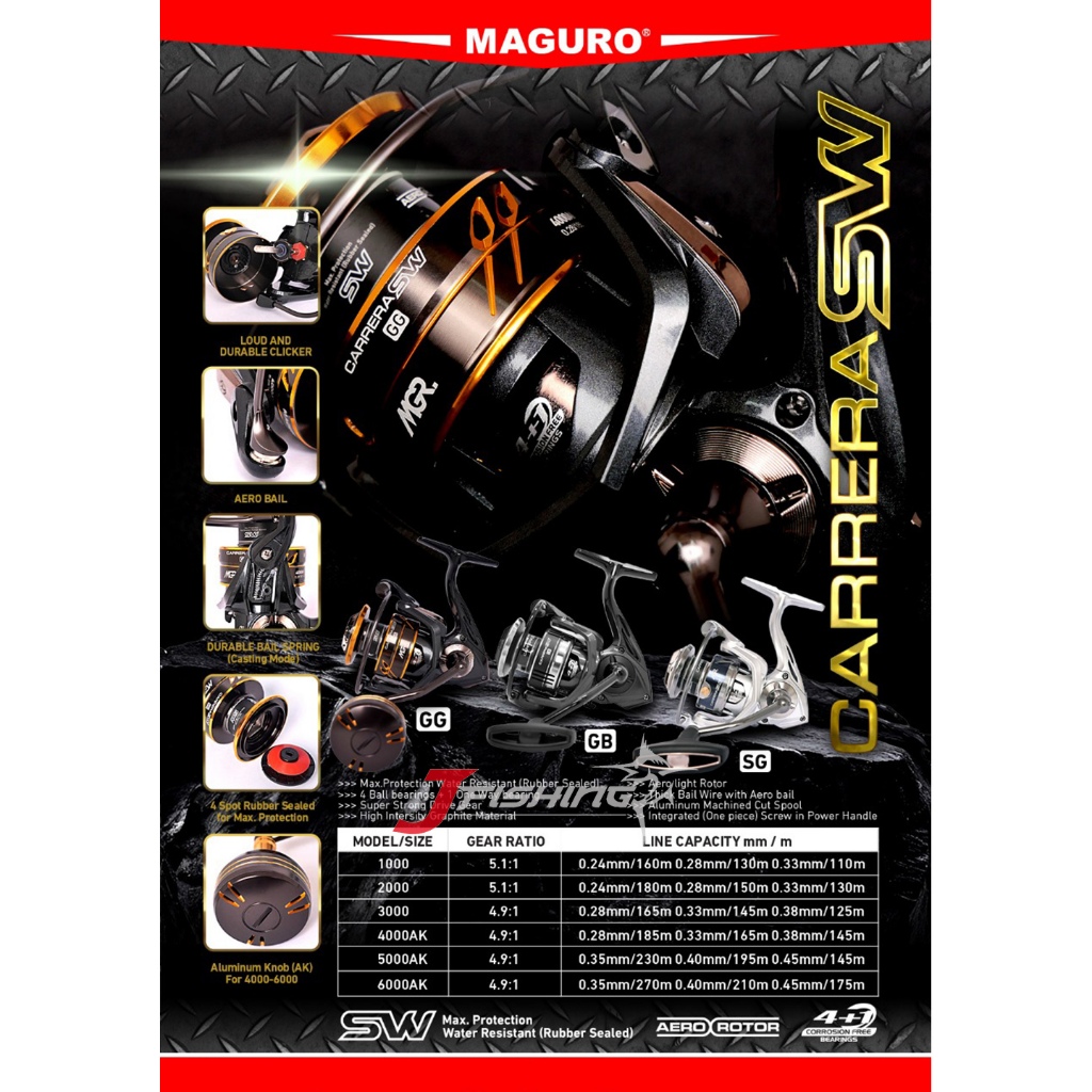 Line: 0.35mm/230m, 0.40mm/195m, 0.45mm/145m