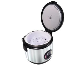 Sanken Supercom SJ-203BK Rice Cooker rice cooker 1 liter is a versatile rice cooker that uses stainless material for body and pan. The appearance of SuperCom SANKEN looks elegant and luxurious. The stainless pan also looks elegant. SANKEN’s latest technology produces high quality stainless pans. The stainless coating does not peel, making processed foods more hygienic and healthy. Stainless pan anti-scratch, anti-rust, durable, and unshapoved frame over a long period of time