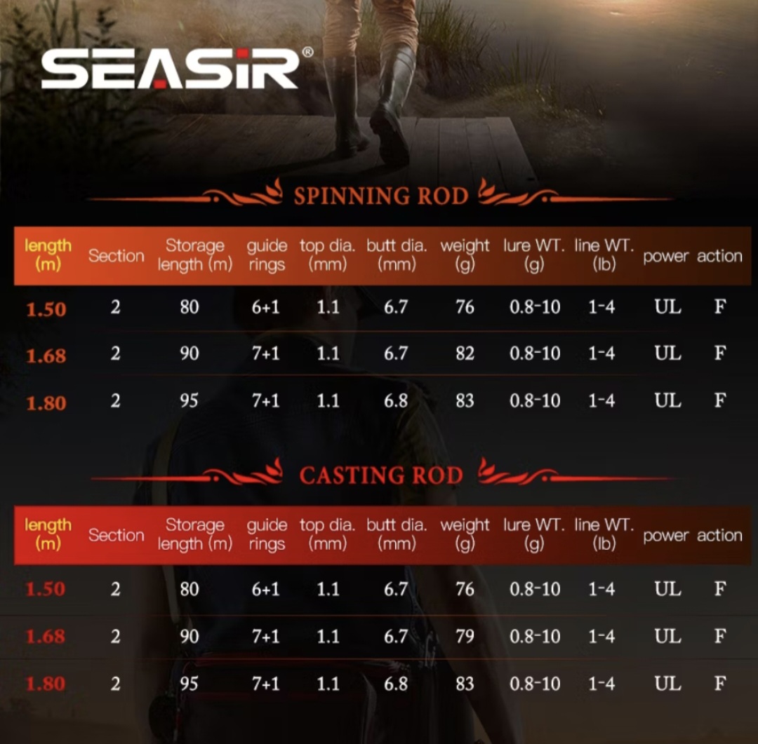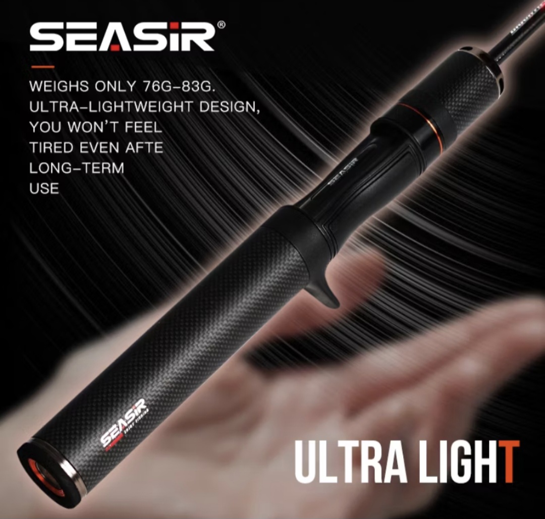 SEASIR Black Arrow Fishing Rod 1.5M/4.92FT 76G Lure Weight 0.8-10g UL Carbon Fiber FUJI O Ring Guide BFS Two Sections Light Sound Switch Micro Fishing Rod (1.5m/1.68m/1.8m)
