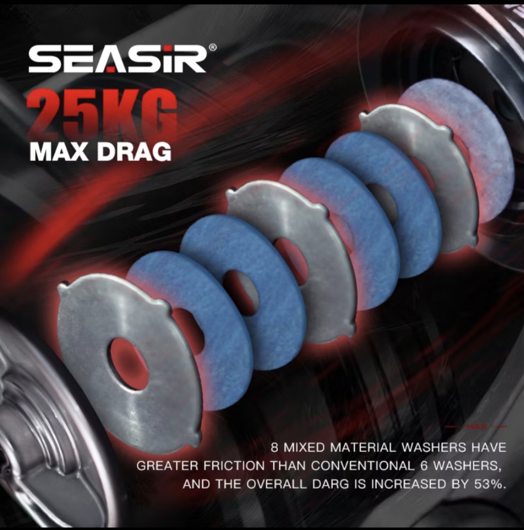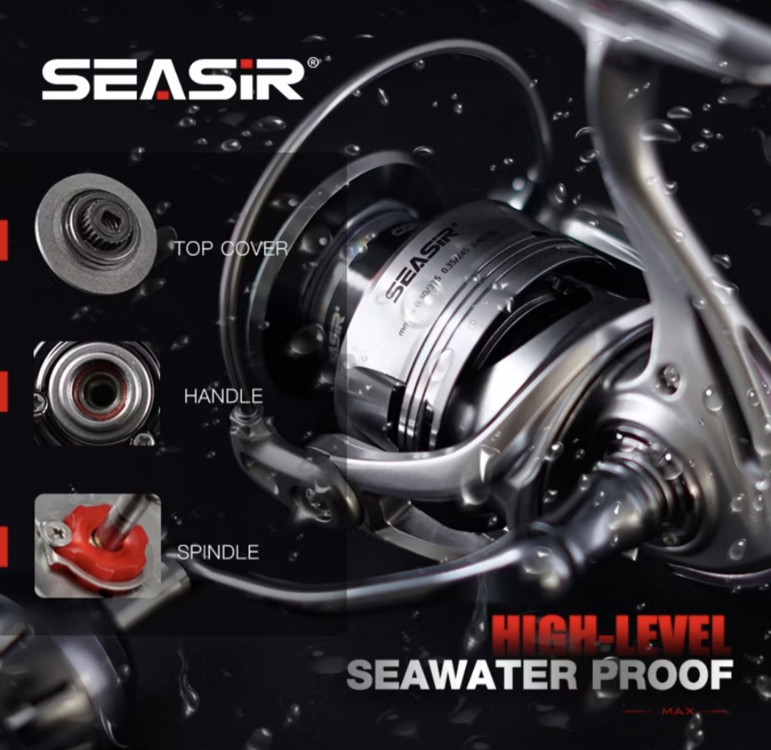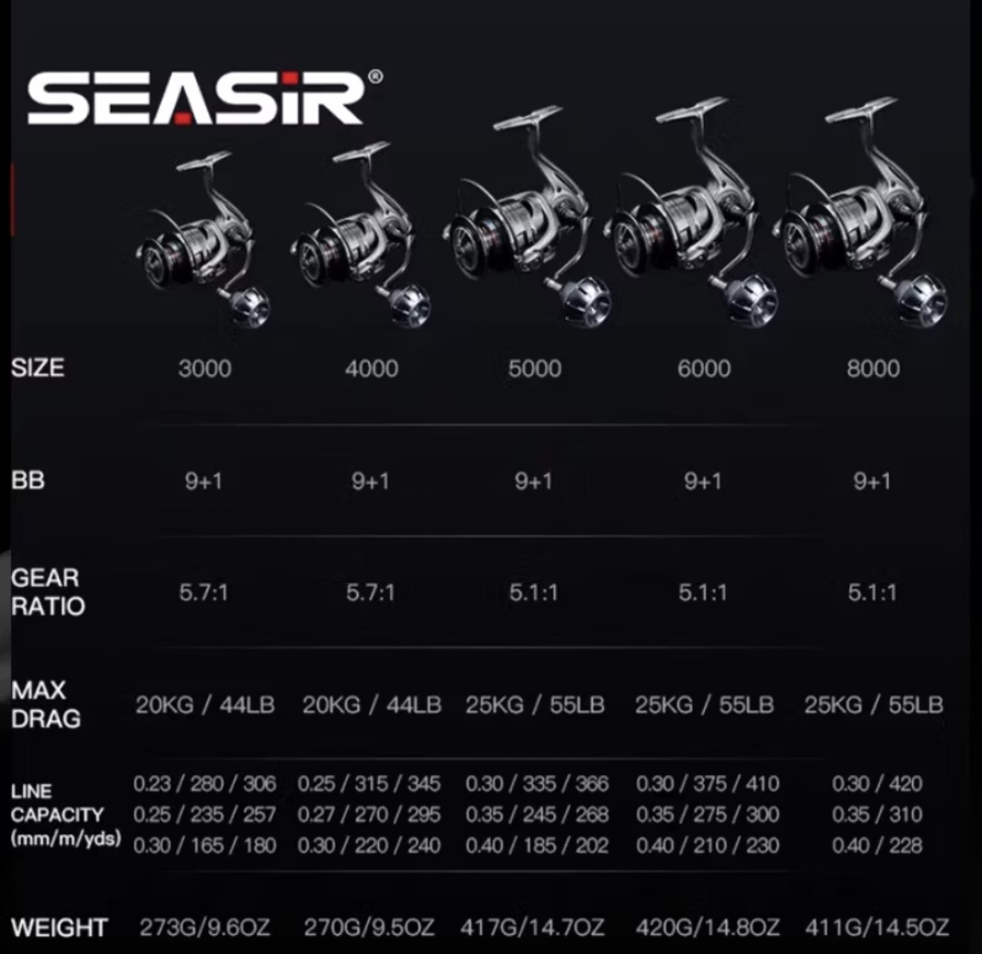 SEASIR CONTRA MAX Reel Pancing Putar Gulungan Power Handle, Saltwater All Metal Spinning Fishing Reel Air Laut, 25KG Max Drag, 9+1 BB Ball Bearings, 5.1:1/5.7:1 Gear Ratio 3000-6000 Series Aluminum Alloy Body and Grip Fishing Wheel