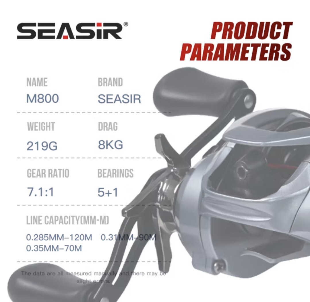SEASIR M800 Baitcasting Fishing Reel Brass Gears 8KG Max Drag Power 7.1:1 High Speed Gear Ratio Magnetic Brake System for Freshwater and Saltwater