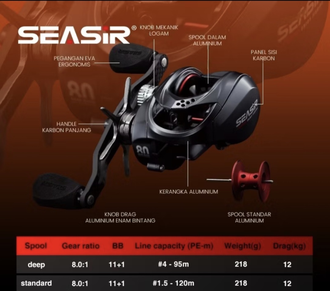 SEASIR Salminus Baitcasting Fishing Reel, Left/Right