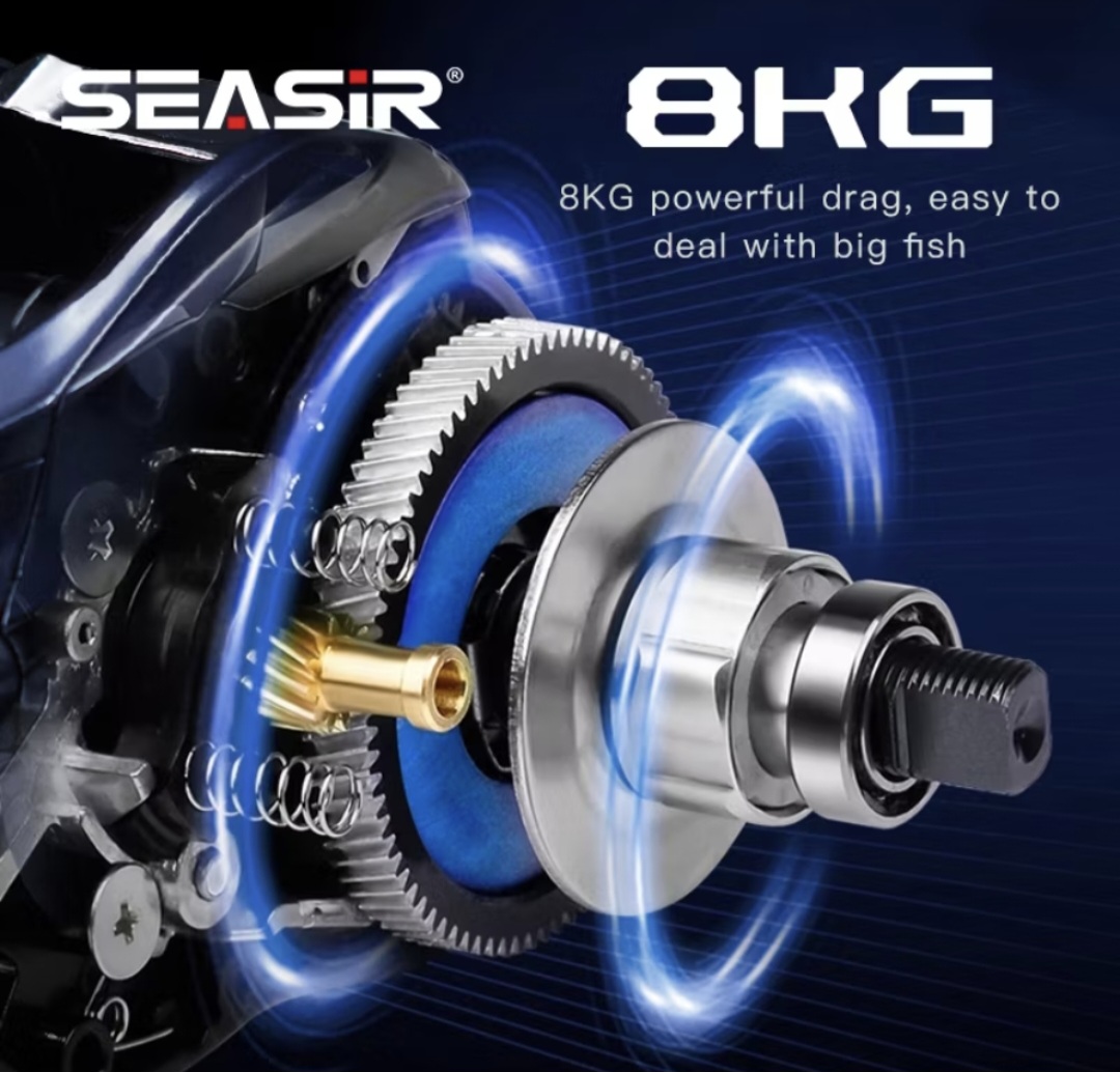 Reinforced 7075 Aluminum Alloy has higher hardness than traditional aluminum, which significantly increases durability. Smooth operation and a strong 8kg drag force make it easy to handle large fish.