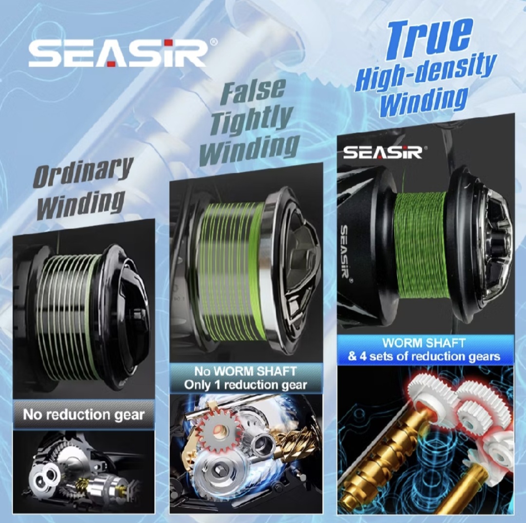 (Solid spool reels from other brands usually only have one set of reduction gears without a worm shaft, the deceleration effect is limited.)