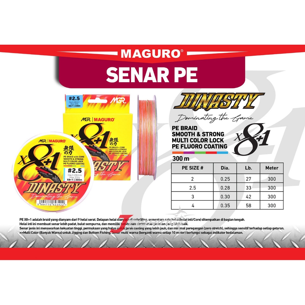 – PE #2.5 / 0.28 mm / 33 Lbs