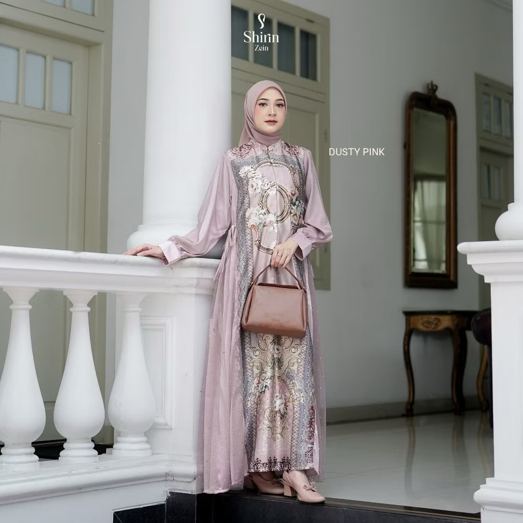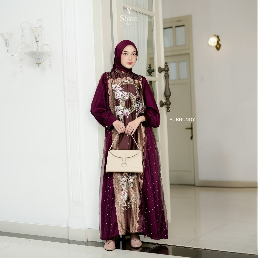 An elegant Gamis that combines the luxury of a baroque floral motif with soft, shiny softness, giving a feminine, classic and classy appearance. Inspired by the luxury of classic European clothing with a touch of Eastern Asian modest fashion, the Salma Series combines a gold floral baroque motif and a sparkling tulle texture to create an elegant feminine impression. The design depicts the philosophy of “Grace in Simplicity” – unexcessive elegance, where every detail is soft and harmonious. Salma Series is a representation of the beauty of modern Muslim women: characterful, polite and charming in simplicity.