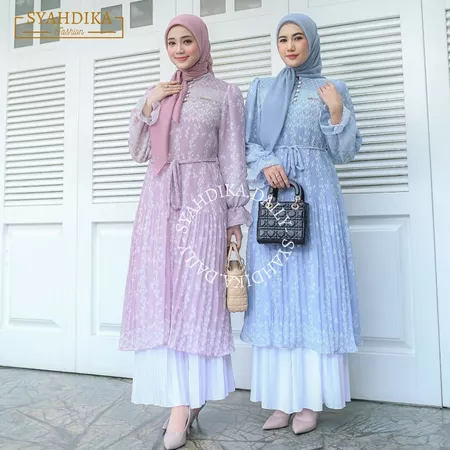 SYAFIRA Long Tunik Plisket By Syahnaz muslim fashion | Latest Midi Dress