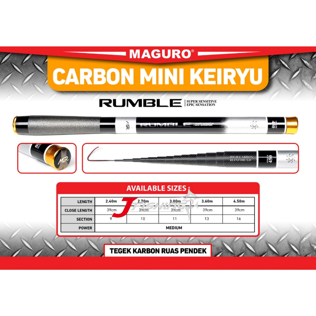 The latest Tegek Rod from maguro, has a short section that is simple and easy to carry around, making it easier for us to store anywhere, for example suitcases, motorcycle seats or bags. This rod has 3 color variants as drawn, available in sizes of 270cm to 450cm