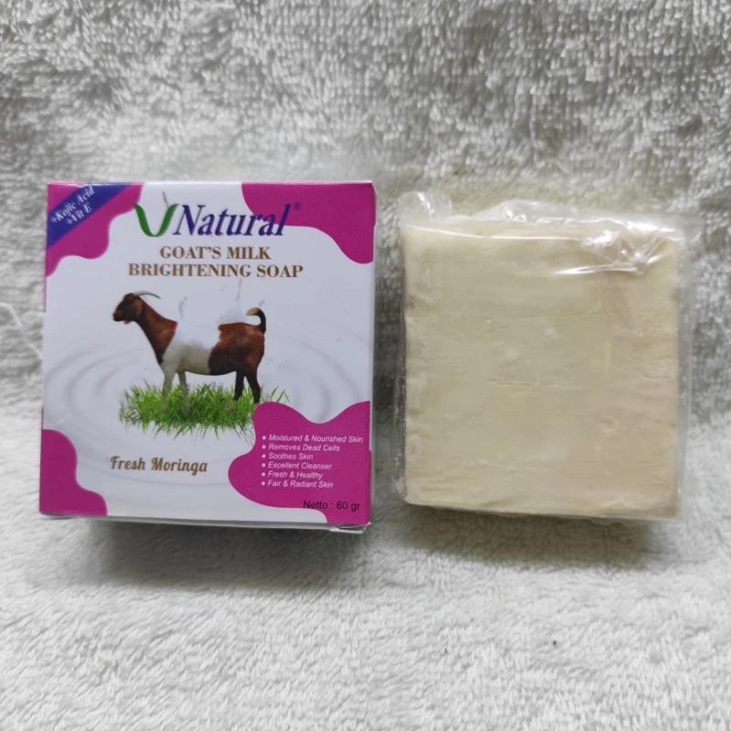V Natural Goat’s Milk Brightening Soap formulated with Kojic Acid & Vitamin E & Fresh Moringa & Goat Milk Extract is a soap used to treat the skin, making the skin feel smooth and soft.