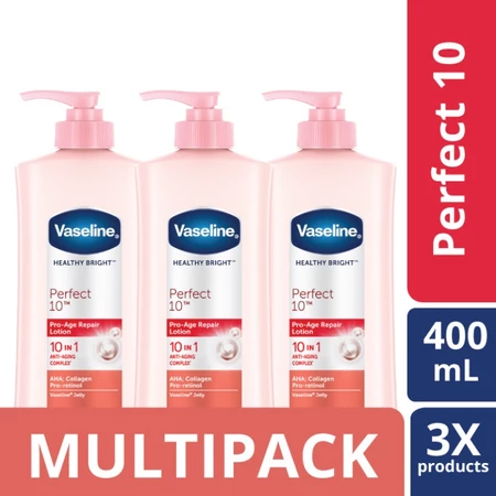 Vaseline Healthy Bright BODY LOTION Perawatan Kulit Perfect10 AHA & Retinol 400ml 1pcs x3Vaseline Healthy Bright BODY LOTION Perawatan Kulit Perfect10 AHA & Retinol 400ml 1pcs x3