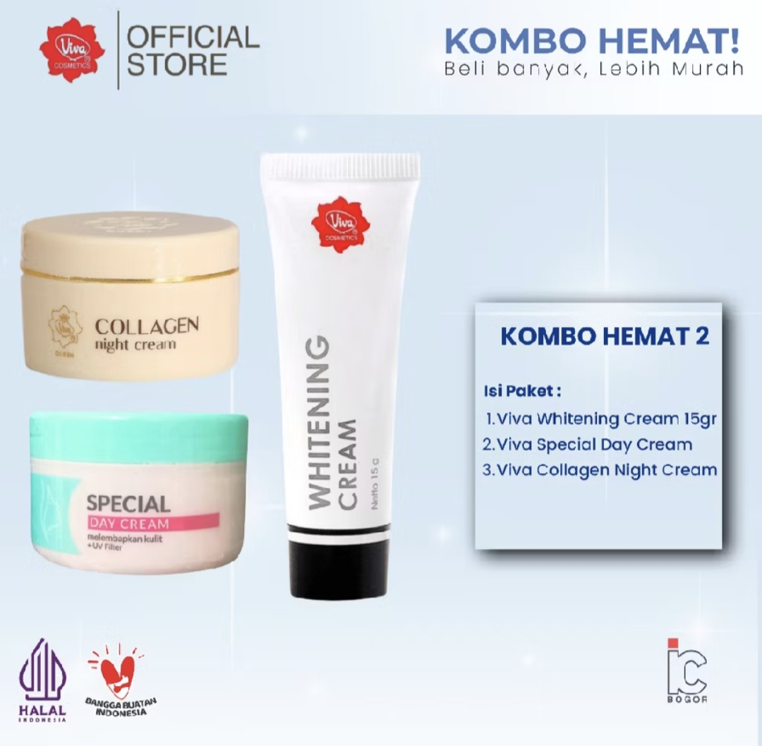 Experience the transformation of healthy and glowing skin in one package! Viva Whitening Cream, Sunscreen Foundation, Special Day Cream, and Collagen Night Cream come in one curated set for a perfectly integrated morning and night routine. Enjoy a silky smooth sensation, intense moisture, and maximum sun protection, suitable for all skin types, from beginners to minimalist skincare enthusiasts. A loyal companion on your beauty journey, from your morning routine before activities to a soothing nighttime treatment.