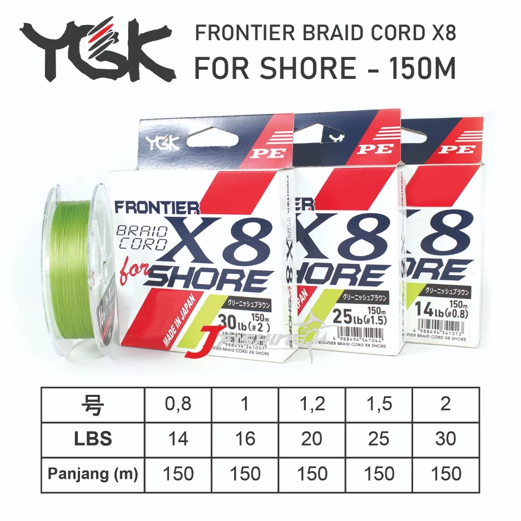 YGK Frontier X8 Shore 150 Meter PE String | PE 0.8 | PE 1 | PE 1.2 | PE 1.5 | PE 2 | Green