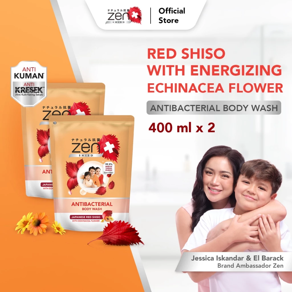 Zen Antibacterial Body Wash Shiso & Echinacea Refill 400ml isi 2pcs